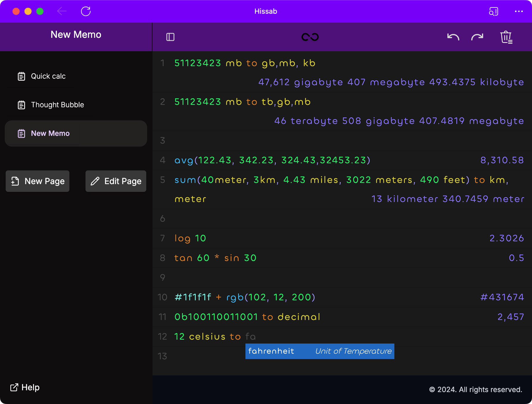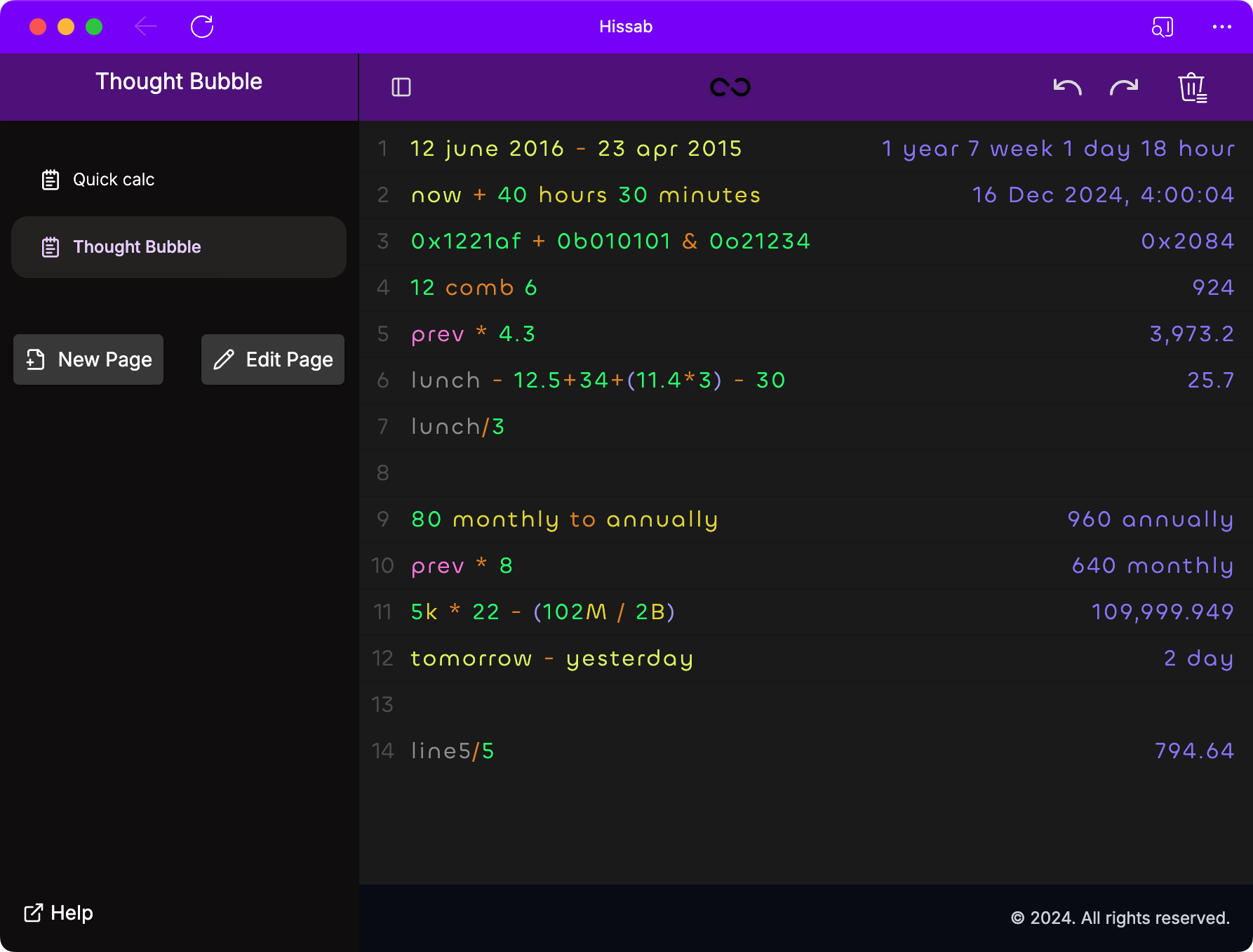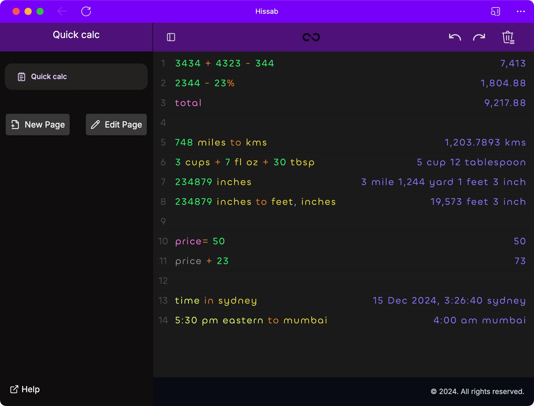 Hissab is a text based calculator app that does way more than calculations. Hissab is useful for performing quick calculations as well as complex workflows